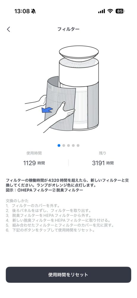 フィルター自体は、4320時間くらい(180日)を目処に交換したほうが良いらしいです。フィルターは別売りで購入する必要があります。